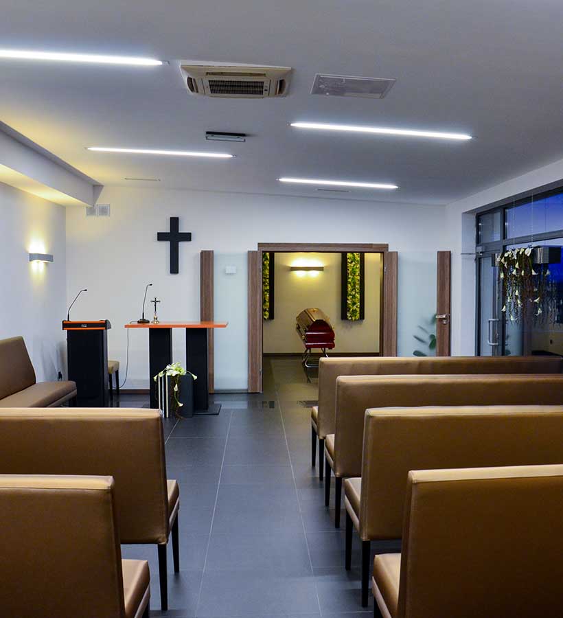 Nasze krematorium należy do grona najnowocześniejszych obiektów w Polsce. Dysponujemy klimatyzowaną kaplicą wielowyznaniową oraz salą pożegnań, które pozwalają na przeprowadzenie ceremonii w atmosferze ciszy i refleksji. Dbamy o każdy detal, aby uroczystość przebiegała z należytą godnością.