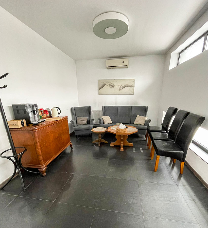 Komfortowo urządzona przestrzeń, w której czas oczekiwania spędzić mogą osoby, nie uczestniczące w ceremonii.
